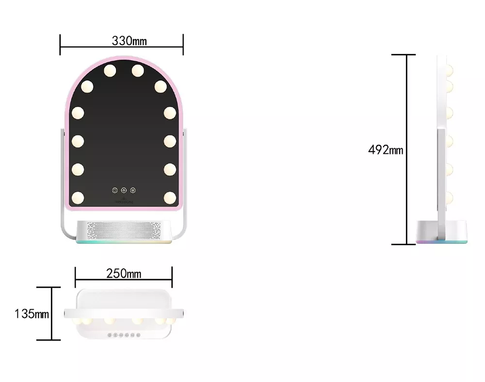 Turhamaisuus Mirror kylpyhuone LED asennetaan kylpyhuoneeseen tilan säästämiseksi. Peilin alaosassa on myös Bluetooth-kaiutin, ja Bluetooth-versiossa 5.2 on nopeampi yhteysnopeus ja vakaampi lähetyskyky. Vain muutamalla yksinkertaisella vaiheella voit helposti liittää puhelimesi tai muun Bluetooth-laitteesi meikkipeiliisi ja nauttia suosikkimusiikistasi milloin ja missä tahansa. Kuvittele kuinka miellyttävää on kylpeä kylpyhuoneessa kauniin musiikin soiessa korvissasi. Kylvyn jälkeen voit myös tarkkailla ihosi kuntoa meikkipeilillä, mikä säästää aikaa ja on kätevää. Ainutlaatuisemman kokemuksen tarjoamiseksi meikkipeilin pohjassa on myös RGB-väriset valot. Nämä värilliset valot voivat säteillä erilaisia värejä luodakseen romanttisen, lämpimän, salaperäisen ja muun erilaisen tunnelman kylpyhuoneeseesi. Kun käytät meikkipeiliä yöllä, sytytä värilliset valot alareunassa tehdäksesi koko meikkiprosessista hauskempaa ja seremoniallisempaa.